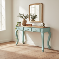 Legno Shabby Chic consolle pieghevole tavolo 3 cassetti turchese Design francese in legno massello costruzione moderna soggiorno mobili