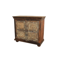 Armadio soggiorno 2 porte intricato Design in legno massello riciclato fatto a mano eco-friendly finitura antica per stile rustico